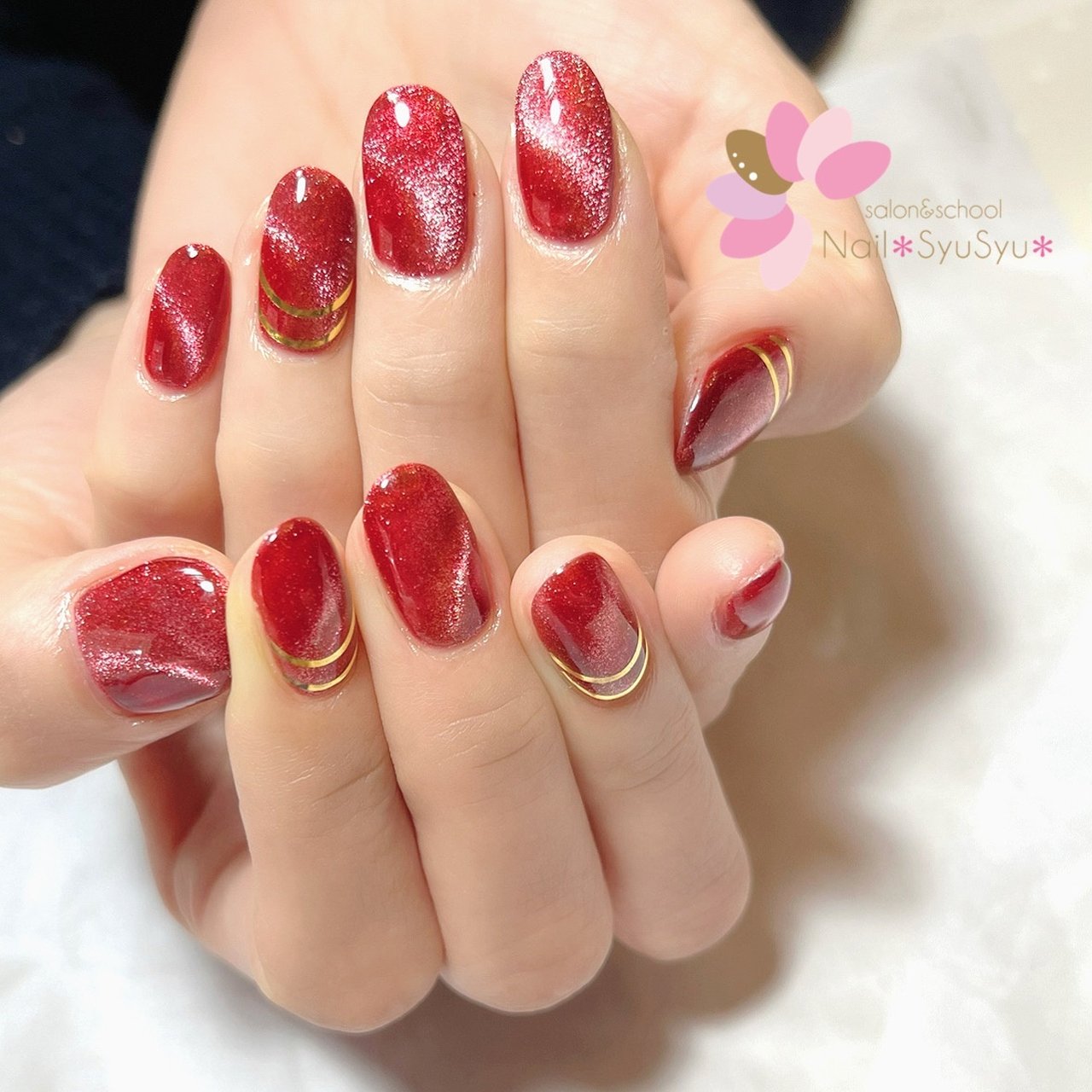 シンプル ラメ レッド ゴールド ジェルネイル Frillnailのネイルデザイン No ネイルブック